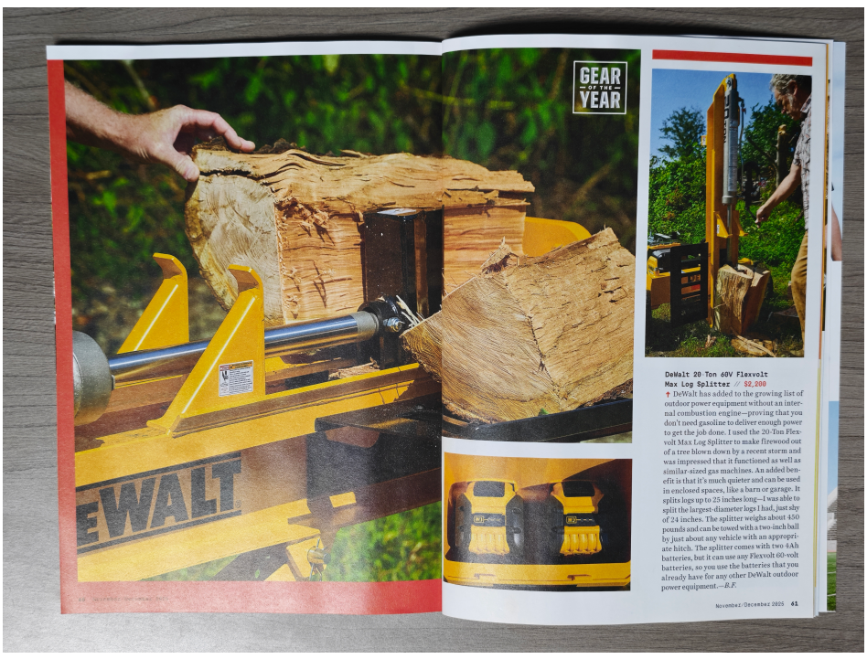 Kamakailan, ang DeWalt lithium-ion battery wood splitter , ginawa sa ilalim ng lisensya ni Jiashan Superpower Tools Co., Ltd. , Matagumpay na nagsilbing pabalat ng prestihiyosong American technology magazine MGA SIKAT NA MEKANIKA . Hindi lamang itinatampok ng karangalang ito ang makabagong lakas ng DeWalt ngunit muling pinagtitibay ang matatag na kakayahan ng Jiashan Superpower at pandaigdigang kompetisyon sa larangan ng paggawa ng matalinong tool ng kuryente.